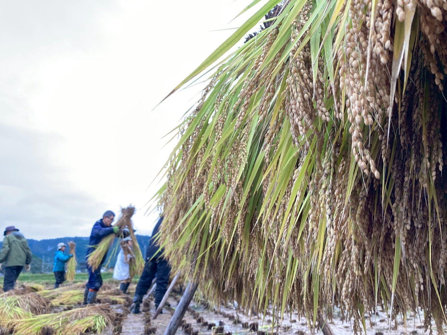 秋の実りを丁寧にはざがけしながら、待ち遠しいごはんに心が躍る!